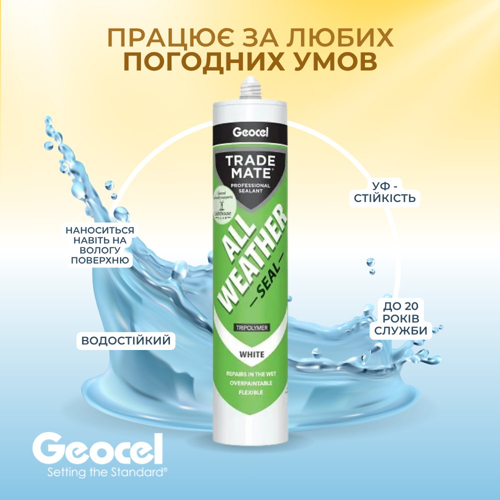 Білий всепогодний полімерний герметик Geocel All Weather 310 мл: максимум плюсів, жодного мінуса