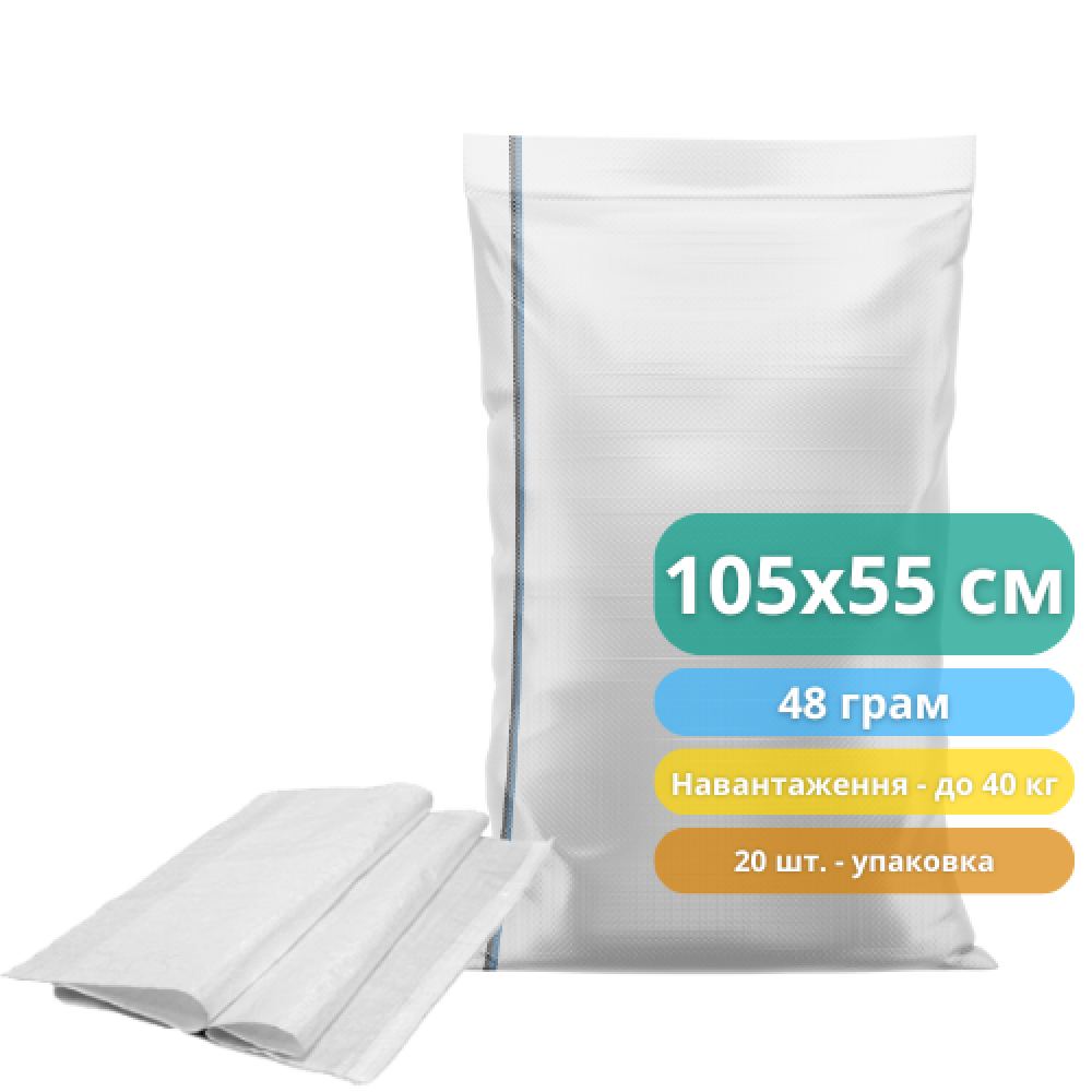 Мішки поліпропіленові 105х55 см, 48 грамів, упаковка 20 штук