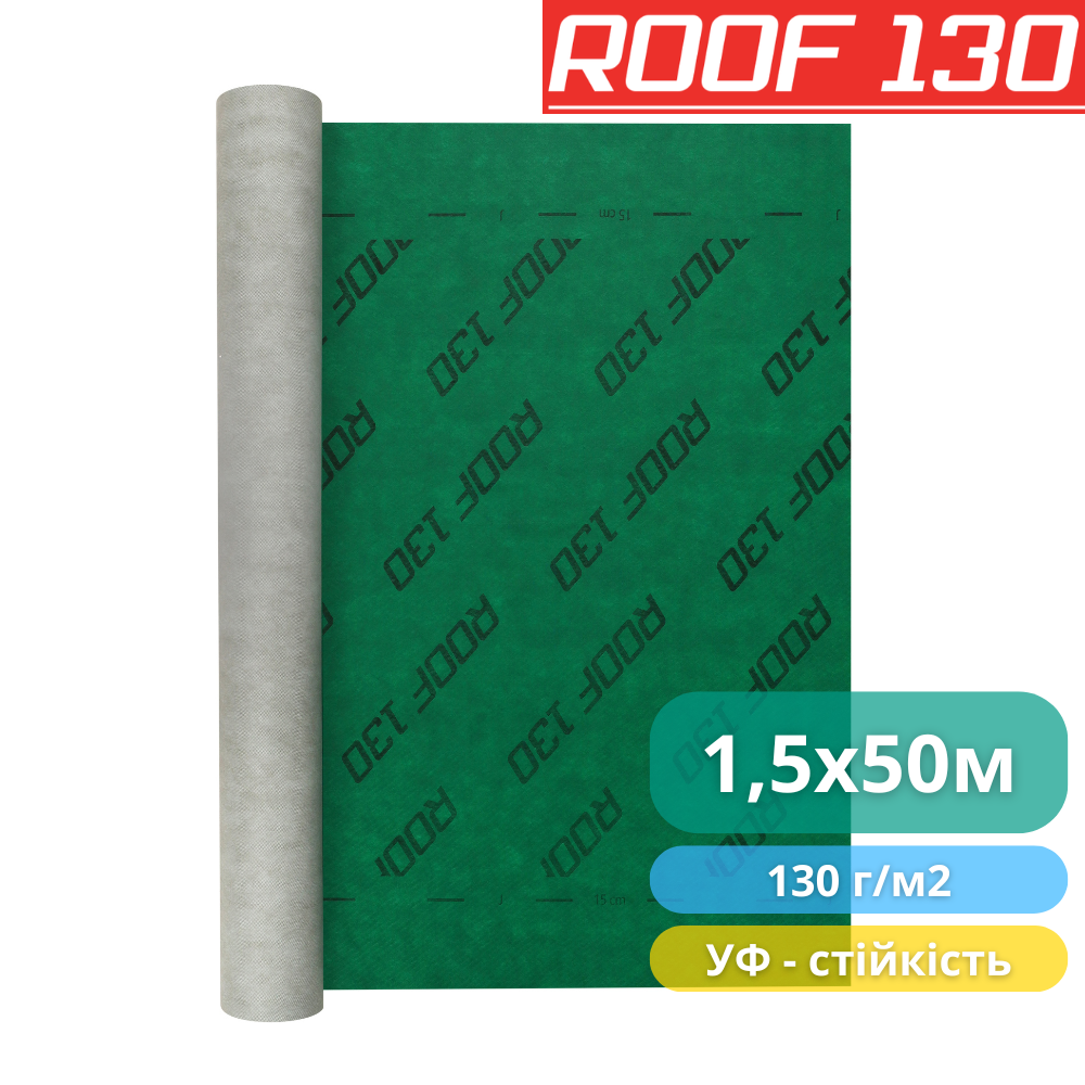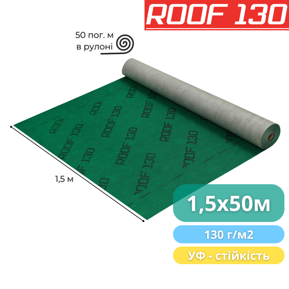 Диффузионная мембрана ROOF 130 1,5х50 м, 75 м2, зеленая/белая, 130 г/м2