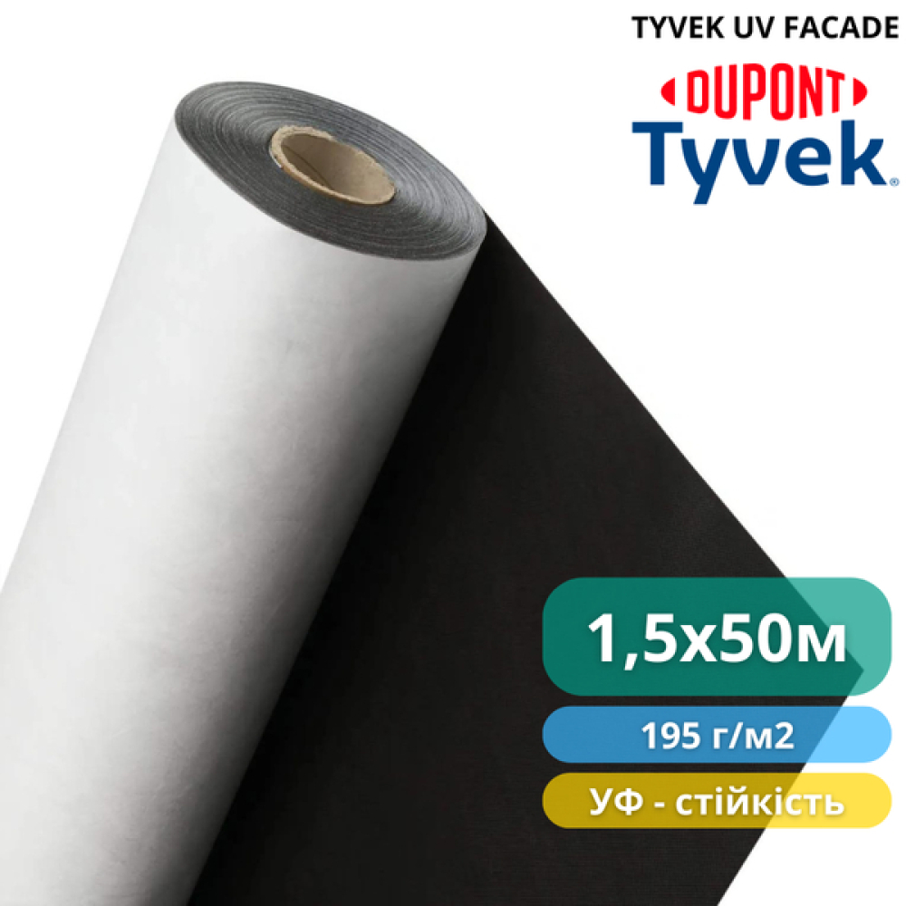 Вітроізоляційна мембрана Tyvek UV Facade 1,5х50 м, 75 м2, 195 г/м2